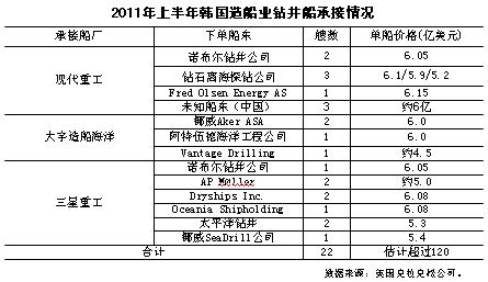 1-6月現(xiàn)代重工、三星重工和大宇造船海洋合計(jì)接單總金額超過330億美元,不知道是同期中國全行業(yè)接單價(jià)值總量的多少倍?