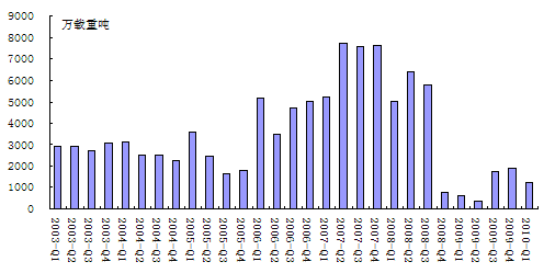 如果說,克拉克松公司統(tǒng)計(jì)數(shù)據(jù)偏低的話,按中國統(tǒng)計(jì),一季度中國船廠承接訂單總量826萬載重噸,然而同期完工量高達(dá)1457萬載重噸,新船訂單僅占完工量57.1%;按日本JSEA統(tǒng)計(jì),2010年1季度日本承接出口船訂單178.4萬總噸,但同期完工量高達(dá)554.8萬總噸,新訂單僅為完工量的32.1%。如果考慮部分訂單撤銷情況,相對于建造能力,當(dāng)前全球新船需求仍是杯水車薪,訂單有效需求不足仍是各大船廠面臨的首要問題。