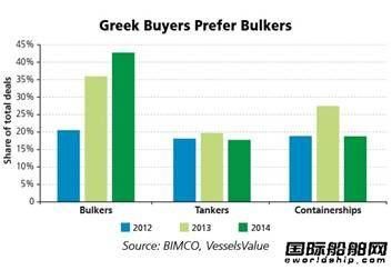 BIMCO的首席分析師Peter Sand表示:“過去兩年希臘船東的投資興趣集中于散貨船,并相對于油船和集裝箱船的均衡發(fā)展,這種趨勢越來越明顯地反映該領(lǐng)域的最大商機――宜早不宜遲?!?BR>    2014年希臘船東購買好望角型散貨船僅為4艘,投資興趣集中于小型散貨船,小靈便型及大靈便型/超靈便型散貨船占91艘的三分之二。