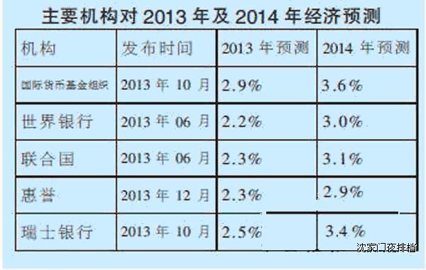 全球經(jīng)濟(jì)復(fù)蘇:2014年,全球經(jīng)濟(jì)復(fù)蘇勢頭將持續(xù),主要機(jī)構(gòu)對2014年經(jīng)濟(jì)發(fā)展的預(yù)測表明了這一觀點(diǎn)(見表格)。