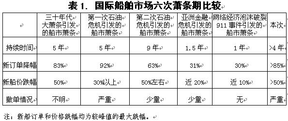 任何人均無法準(zhǔn)確無誤地預(yù)測本次船市蕭條期的長短。目前,由于還存在太多的不確定性因素,使得我們無法確定本次后危機時期的經(jīng)濟走向。我們認(rèn)為,船市蕭條的終結(jié)有賴于前幾年船市高度興旺過程中積聚成的兩大泡沫【一是6.4億載重噸船舶手持訂單(2008年9月歷史最高位),二是2億載重噸造船產(chǎn)能】的擠出;世界經(jīng)濟及早復(fù)蘇并不一定能有效縮短航運蕭條期,加速拆解老舊船舶和大量撤銷造船訂單才能使航運市場提前復(fù)蘇;而造船市場供求關(guān)系的改善不僅要靠新船訂單量明顯增加,更有賴于全球過剩造船能力的處置。但是,大量拆解船舶對船東并不輕松,而造船訂單被大量撤銷和大幅度處置過剩造船能力對船廠造成的極大困難也是不言而喻的。至于本次船市蕭條持續(xù)時間,我們認(rèn)為船市蕭條期起碼要比世界經(jīng)濟金融危機長,即使世界經(jīng)濟出現(xiàn)復(fù)蘇,傳導(dǎo)至船舶市場還需要一段時間,最樂觀估計本次船舶市場蕭條期持續(xù)時間至少在7-8年,如果世界經(jīng)濟不能持續(xù)有效復(fù)蘇,世界造船市場蕭條持續(xù)時間將更長。